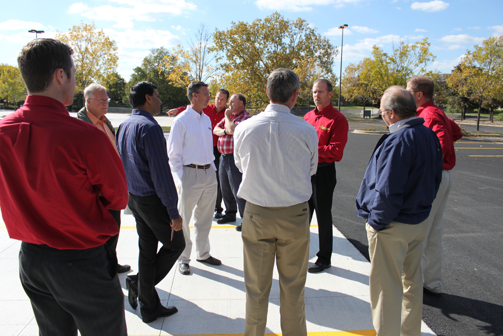 Currently we have 15 different pavement types on our parking lot. This includes UltraLot Whitetopping, roller compacted concrete, pervious asphalt, spancrete and stamped concrete. We also hold educational events in which we invite colleagues to install their innovative products as guests watch and learn about the pavement. TrueGrid and Spancrete are two recent products that have been installed this way.
