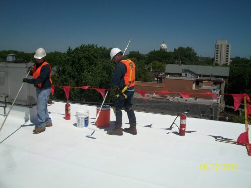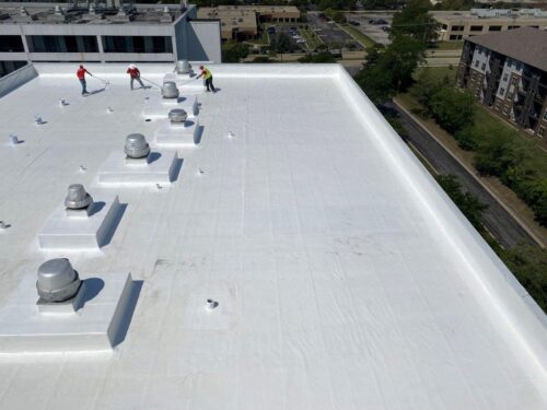 Our liquid-applied roof coatings provide a seamless, protective layer that helps reduce HVAC usage and improve energy efficiency. These reflective coatings lower roof surface temperatures and extend the life of your existing roof. Many of the coatings we use are VOC-free, minimizing environmental impact during and after application. It’s an ideal solution for restoring roofs without a full replacement.